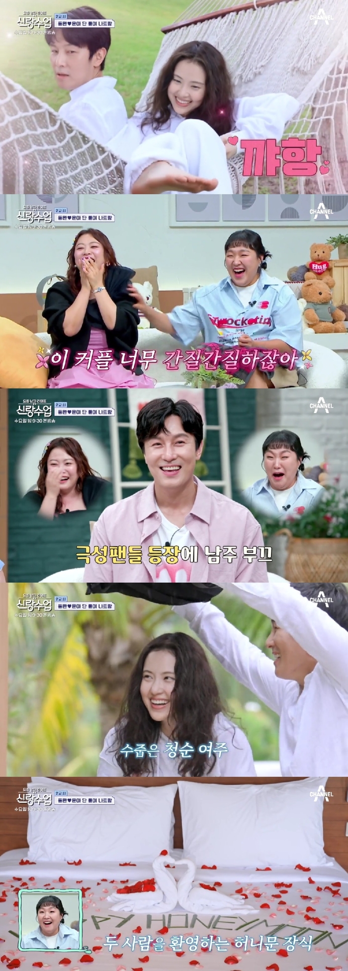 두 사람이 들어간 숙소에는 침대 위에 빨간 장미꽃과 잉꼬 수건까지 허니문 이벤트가 펼쳐져 있었다. 쑥스러워하면서도 좋아하는 둘의 모습에 문세윤은 “신혼여행을 엿보는 기분이다”라며 웃었다.