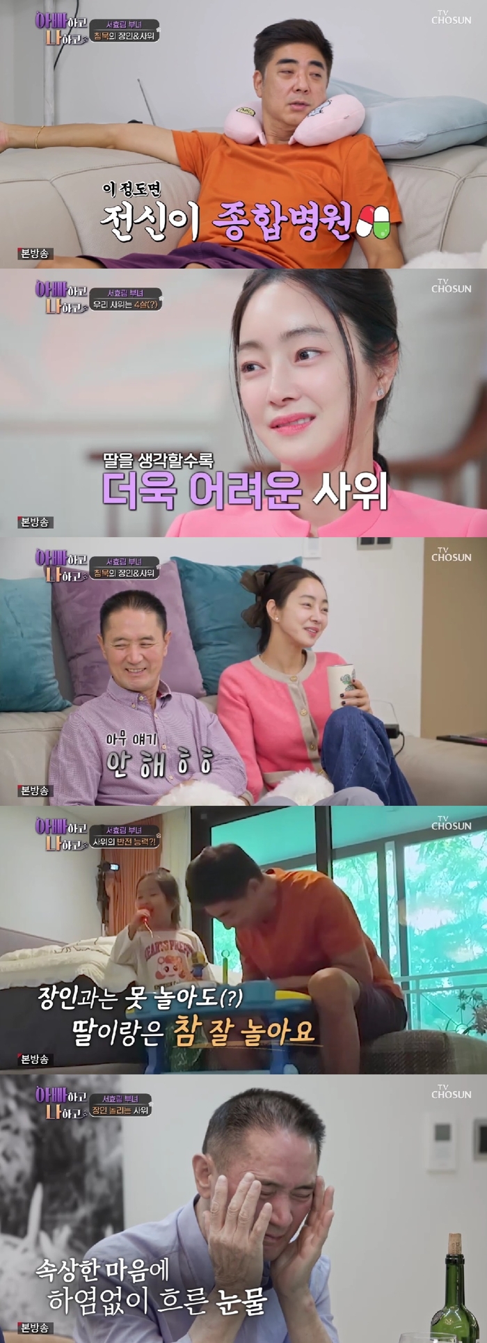 딸의 육아를 도와주는 처가에 자주 들르는 정씨는 장인과 나란히 앉아 한 마디도 하지 않는 모습이었다. 서효림은 “함께 있어도 거의 말을 하지 않는다. 아빠도 뭔가 한마디 하실 법도 한데 안 한다”라고 말했다.