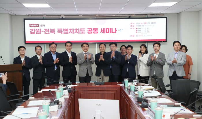 이번 세미나는 강원-전북 지역 국회의원 주최로 강원특별자치도 유상범 국회의원과 전북특별자치도 한병도 국회의원이 참석했으며 김진태 강원특별자치도지사도 자리에 함께 하였다.