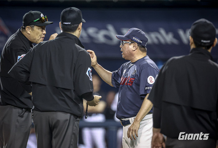 김 감독은 지난 20일 KT전에서 비디오 판독에 불복해 퇴장당했다. 당시 8회 롯데 1루주자 김동혁이 서동욱의 땅볼 때 2루로 뛰었고 아웃됐다. 타자 서동욱은 살았다.