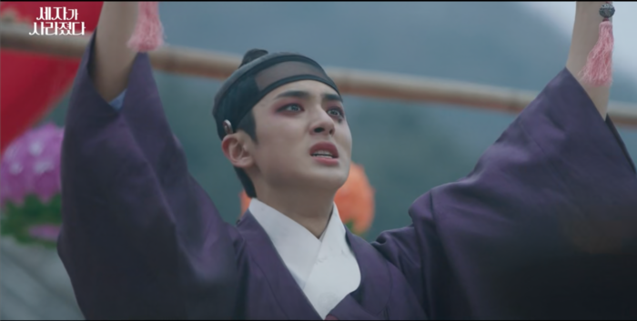 권력욕이 없는 도성대군을 표현하기 위해 8회에서는 광기어린 ‘칼춤’을 벌이기도 했다. 궁 한복판에서 짙은 눈화장을 한 채 양손에 칼을 쥐고 굿판을 벌였다. 이런 도성대군의 ‘미친’ 연기 덕에 세자 책봉식이 미뤄지기도 했다.