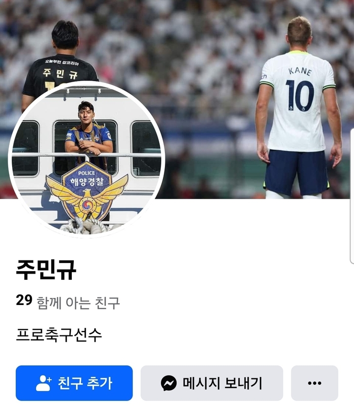 주민규는 “이상적인 플레이스타일로 여기는 것이 케인이다. 득점 뿐 아니라 킬패스로 파이널 서드까지 진입하는 것을 보면 남이 갖지 못한 능력이 있다”고 말했다. 2년 전 그라운드에서 직접 목격하기도 했다. 당시 방한한 토트넘과 친선전을 치른 팀K리그(올스타) 일원으로 뛴 그는 케인의 위력을 실감했다. 당시 케인이 멀티골을 넣은 토트넘이 팀K리그를 6-3으로 제압했다. 주민규는 “힘이 정말 세더라. 그리고 (슛) 임팩트가…”라며 “한 번은 왼발로 해결하는데 슛 템포가 아니었다. 들어가는 걸 보고 웃었다”고 말했다. 그러면서 휴대폰을 꺼내 자기 SNS 배경화면을 보였다. 당시 케인과 나란히 서 있는 뒷모습이다. 주민규는 “계속 간직해왔다. 지금도 여전히 롤모델이고 팬”이라고 방싯했다.