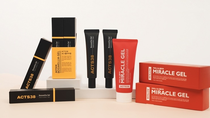 ‘바르는 보스웰리아 액츠38(ACTS38)은 △보스웰리아 △N-아세틸글루코사민 △히알루론산 △ 병풀추출물 등 40여 가지 재료를 최적화된 원료 배합으로 혼합했다. 의약품이 아닌 화장품으로서 스테로이드·호르몬 전구체·각성제·진통제·소염제 등이 일절 첨가하지 않고, 원물 특성과 효능만으로 제품 기능을 채웠다. 관절 통증이나 염증에 대한 직접 치료 목적이 아닌, 보조적인 관리 수단으로 활용한다.