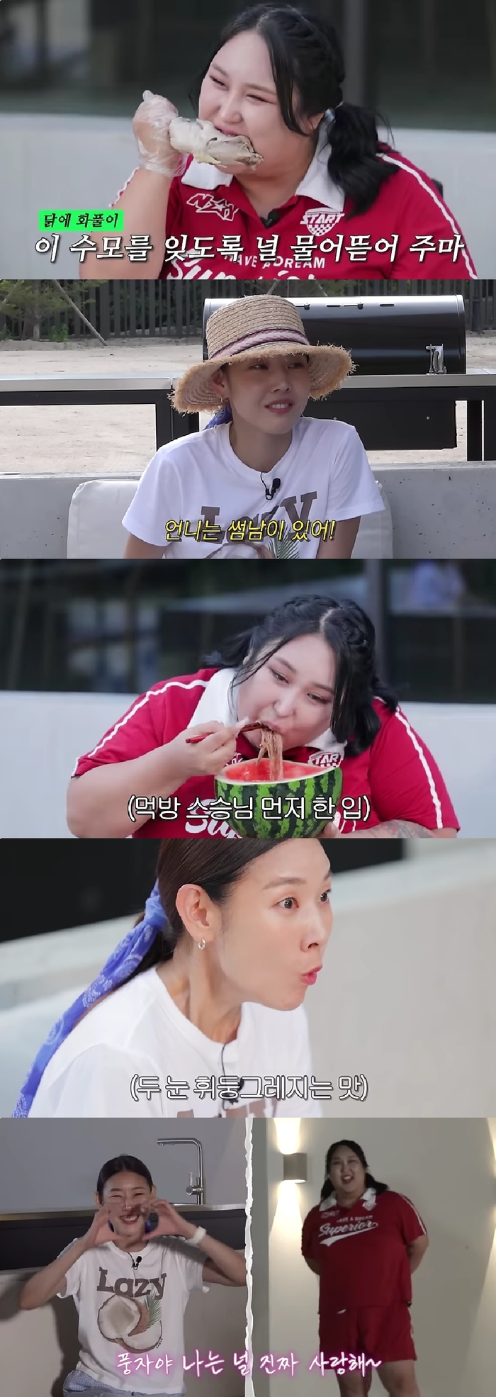 해가 지고 선선해지자 모닥불 불멍이 펼쳐졌다. 지난해 첫선을 보인 웹예능 ‘내편하자’로 처음 만났던 두 사람은 패널에서 절친이 된 사연도 털어놨다.
