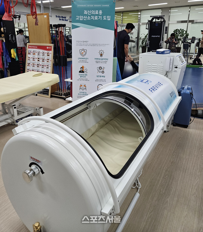 이밖에도 최신용 고압산소치료기, 충격파 치료기 등이 선수촌 치료실에 놓여져 있었다. 가격대는 억대다. 선수촌에서는 이 시설을 모두 무료로 치료 목적에 맞게 이용할 수 있다.