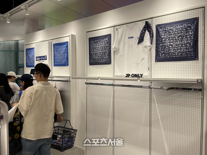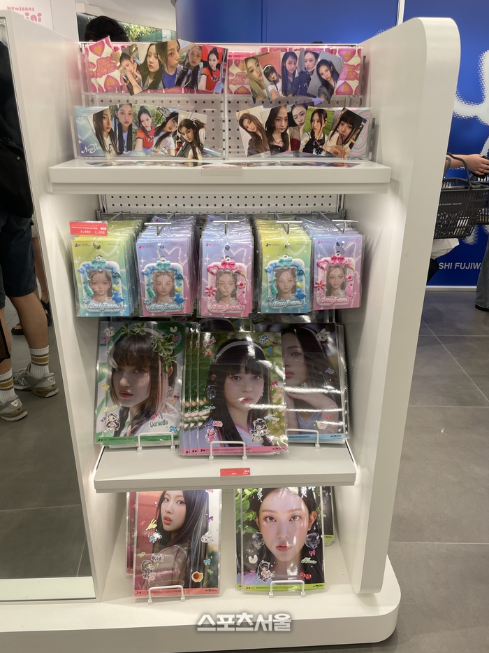 지상 2층은 패션 아이템을 판매했다. 히로시 후지와라가 한글, 영어, 일본어로 쓴 뉴진스의 팀명과 멤버 이름이 박힌 티셔츠, 모자, 백팩 등 스트리트 패션 아이템 등이 준비됐다. 티셔츠, 모자 등은 일찌감치 매진돼 팬들은 아쉬움을 달랬다.