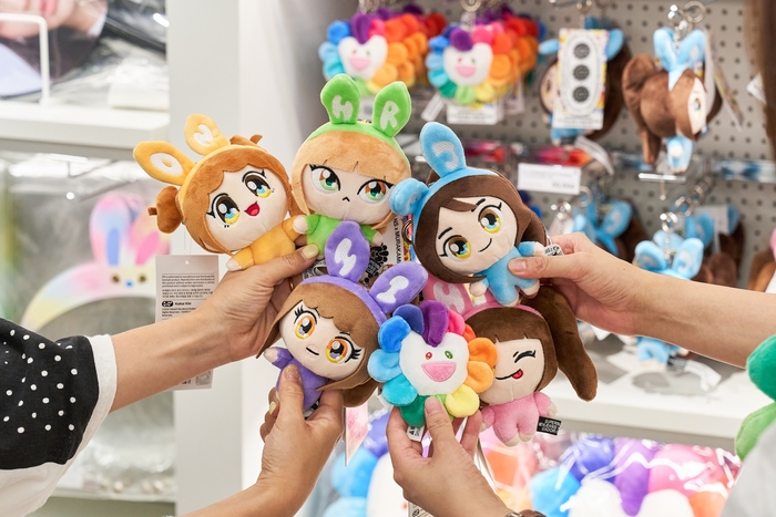 지하 1층에서는 무라카미 다카시의 시그니처 캐릭터인 플라워를 오마쥬해 뉴진스의 상징인 토끼(Tokki)와 결합한 ‘플라워 캐릭터’가 시선을 사로잡았다. 무라카미 다카시가 직접 스케치한 각 멤버들의 캐릭터 원화를 바탕으로 한 캐릭터 아트워크가 플러시 키링, 스마트톡 등의 다양한 제품으로 구현됐다.