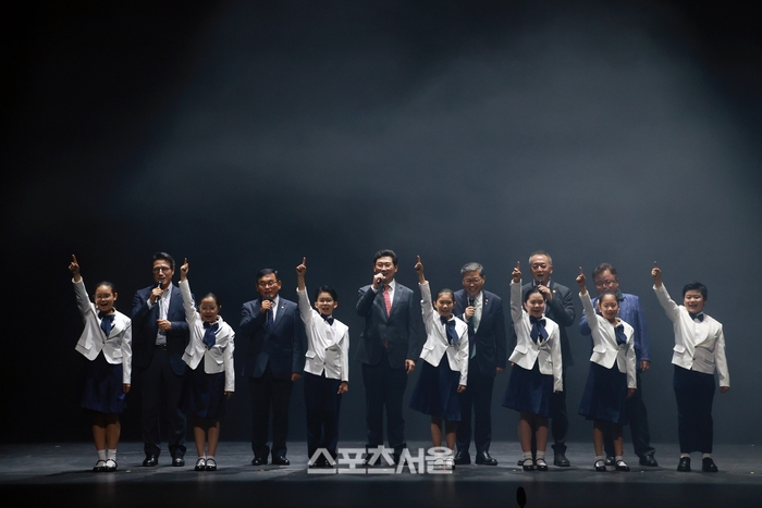 용인시립소년소녀합창단과 리틀용인, 이륙뮤지컬컴퍼니, 키즈동탄으로 구성된 합창단원들이 부른 ‘아름다운 강산’은 용인공연예술연구원의 화려한 춤사위와 어우러지면서 관객들에게 큰 박수를 받았다.