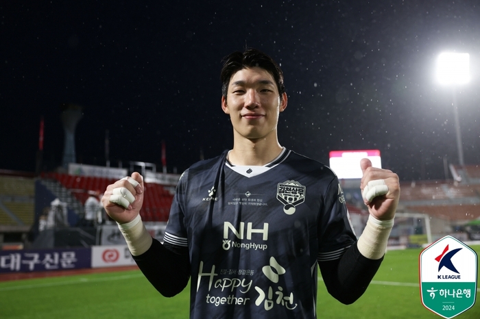 김준홍은 29일 김천종합운동장에서 열린 하나은행 K리그1 20라운드 대구FC와 홈경기를 마지막으로 김천 유니폼을 벗는다. 지난해 1월 김천 7기로 입대한 그는 6월 말년 휴가를 나간 병장들과 달리 끝까지 팀에 남아 골문을 지켰다.