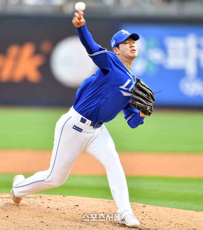 삼성 우완투수 황동재가 30일 수원KT위즈파크에서 열리는 2024 프로야구 KT위즈와 삼성라이온즈 더블헤더 2차전에서 선발역투하고 있다. 2024.06.30.