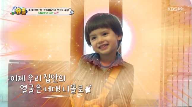 또 “벌써 광고 제의가 들어왔다. 이 정도 외모면 모든걸 다 가질 수 있다. 꼴로야, 삼촌이 쏟아부은 사랑 잊으면 안된다. 항상 잘생긴 얼굴 조심해야 한다”며 사랑을 드러냈다. 이어 니꼴로의 일상이 공개됐다. 니꼴로의 엄마는 “니꼴로가 제일 좋아하는 사람에게 피로회복제를 줘라”라고 말했다.