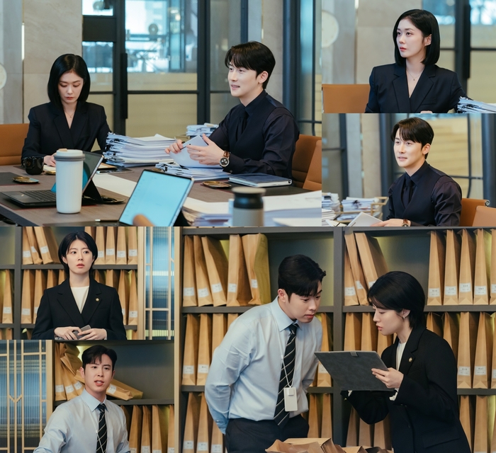 그런 가운데 공개된 사진은 월간회의 중인 ‘이혼팀’ 차은경, 한유리, 정우진(김준한 분), 전은호(표지훈 분)의 모습이 담겨있어 호기심을 자극한다. 새로 주어진 업무를 파악하기에 바쁜 한유리. 아직 모든 게 낯설고 서툰 신입변호사의 로펌 입성기가 궁금해진다. 머리를 맞대고 고객 리스트를 살피는 한유리와 전은호를 유심히 지켜보는 베테랑 변호사 차은경의 포스도 범상치 않다.