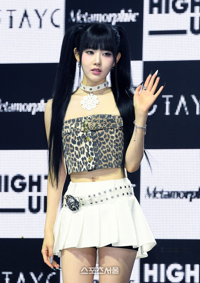 스테이씨(STAYC) 시은이 1일 서울 광진구 예스24 라이브홀에서 진행된 첫 번째 정규앨범 ‘메타모르픽(Metamorphic)’ 발매 기념 미디어쇼케이스에서 취재진을 향해 포즈를 취하고 있다. 2024. 7. 1.