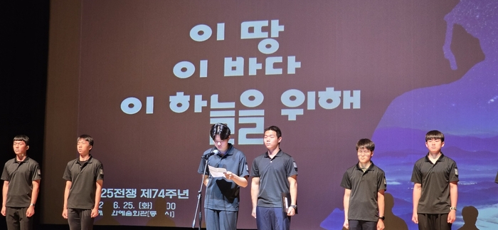 6월 25일(화)은 동해시문화예술회관에서 열린 6·25전쟁 74주년 기념식 영웅께 드리는 편지 낭독에서 김진서 별숲 단장은 “부사관이 꿈인 저는 18세로 부모님과 선생님의 보살핌을 받는 청소년으로 전적지 순례에서 참전 용사분들의 이야기를 들으며 제 또래 나이에 한치 앞의 상황도 알 수 없던 전장에서 극한의 공포를 이겨내며 피와 땀을 흘리신 희생과 헌신 그리고 호국정신으로 조국을 사수하셨다는 말씀에 큰 용기를 얻어 대한민국을 지키는 방패이자 창이 될 것을 다짐할 수 있었다”라는 편지를 읽어 큰 박수를 받았고, 참전용사께 청소년들이 정성들여 만든 안마봉을 선물로 드리고 포옹하는 장면은 많은 사람의 가슴을 따뜻하게 하였다.