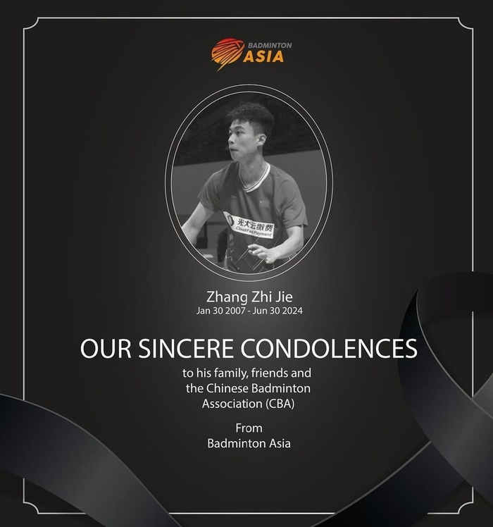 [스포츠서울 | 유다연 기자] 중국 배드민턴 유망주로 꼽히던 장즈제(張志杰·17)가 인도네시아에서 열린 2024 아시아 청소년 배드민턴선수권대회 혼성단체전 조별리그 경기 중 갑작스럽게 사망했다.