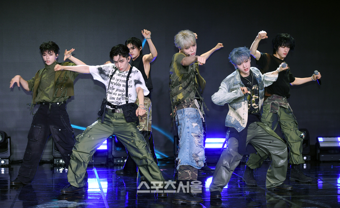 올아워즈(ALL(H)OURS)‘가 2일 서울 강남구 일지아트홀에서 진행된 두 번째 미니앨범 ’위트니스(WITNESS)‘ 발매 기념 미디어 쇼케이스에서 타이틀곡 ’도깨비‘ 무대를 선보이고 있다. 2024. 7. 2.