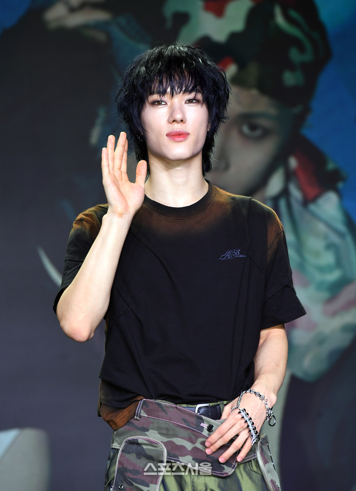 올아워즈(ALL(H)OURS) 제이든이 2일 서울 강남구 일지아트홀에서 진행된 두 번째 미니앨범 ‘위트니스(WITNESS)’ 발매 기념 미디어 쇼케이스에서 취재진을 향해 포즈를 취하고 있다. 2024. 7. 2.