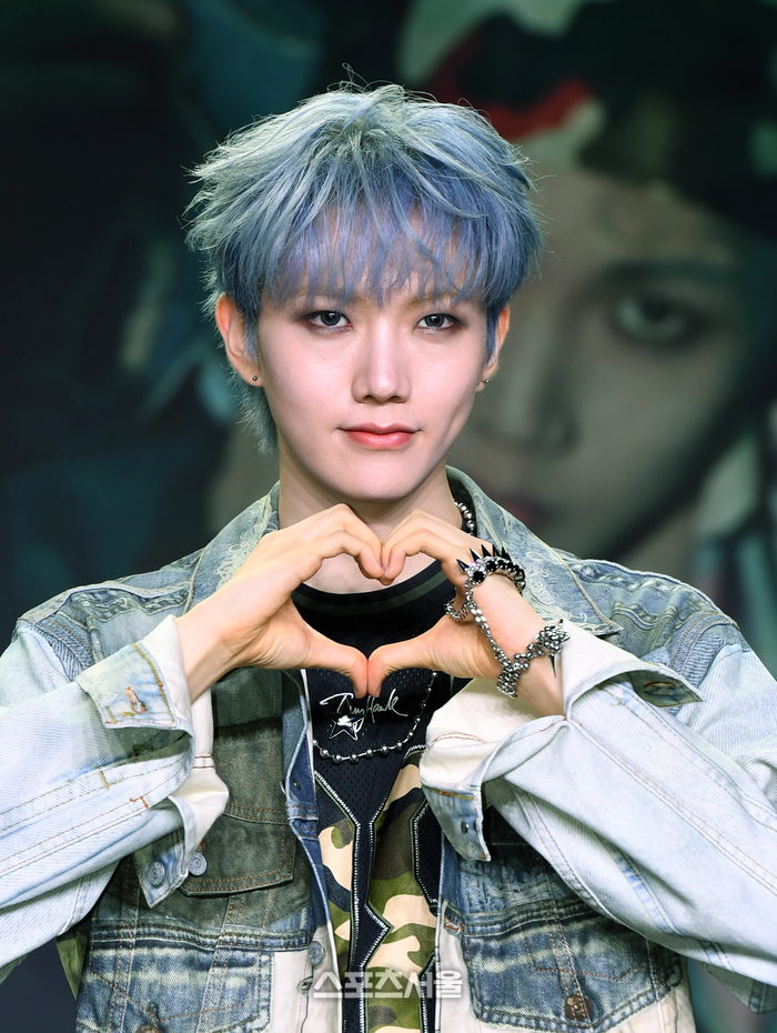 올아워즈(ALL(H)OURS) 현빈이 2일 서울 강남구 일지아트홀에서 진행된 두 번째 미니앨범 ‘위트니스(WITNESS)’ 발매 기념 미디어 쇼케이스에서 취재진을 향해 포즈를 취하고 있다. 2024. 7. 2.