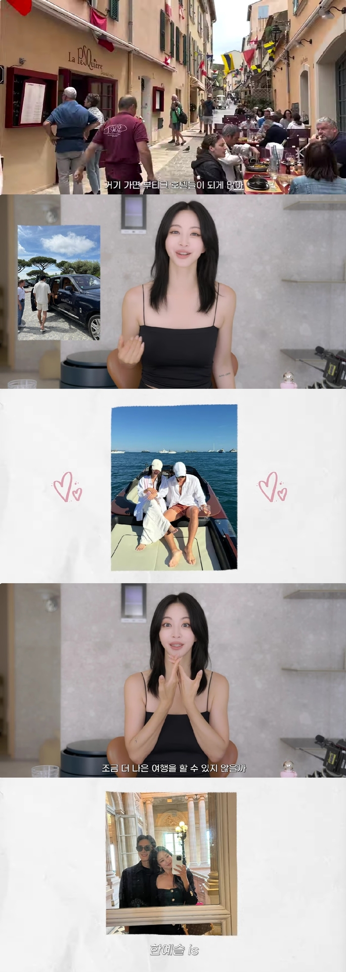 2일 한예슬은 개인 채널 ‘한예슬 is’의 ‘어쩌다 신혼여행’ 에피소드에서 “드디어 신혼여행에서 돌아왔다. 프랑스 남쪽 해변을 따라서 이탈리아 남부까지 돌아보는 여행이었다”라며 추억 보따리를 풀었다.