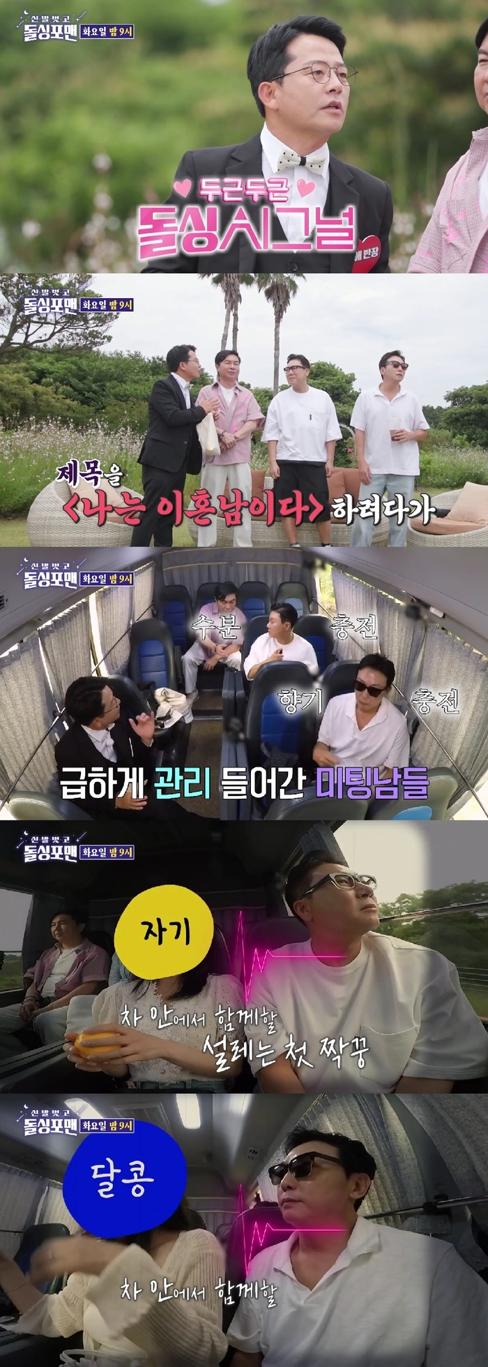 2일 방송되는 ‘두근두근 돌싱 시그널’에서 김준호는 세 돌싱들에게 소개할 여성들이 있다며 자그마한 돌싱 버스에 태웠다. 멤버들이 미스트와 구강 스프레이 등으로 외모를 단장하는 가운데, 소개팅 상대가 등장했고 주인공은 배우 강경헌, 최여진, 이수경이었다.