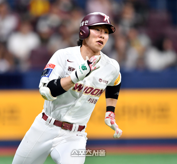 키움 3번타자 김혜성이 2일 고척스카이돔에서 열리는 2024 프로야구 키움히어로즈와 LG트윈스의 경기 1회말 안타로 출루하고 있다. 2024.07.02.