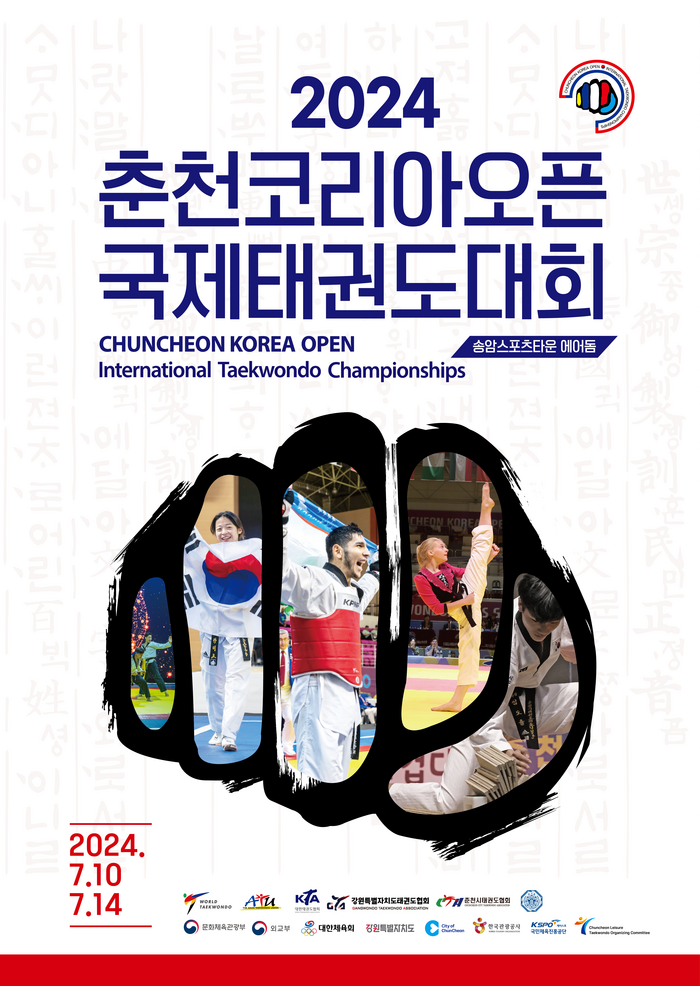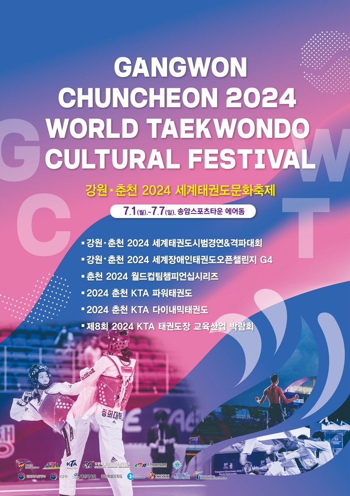 ※ 강원‧춘천 2024 세계태권도문화축제 : 2024. 7. 1.(월) ~ 7. 7.(일)2024 춘천코리아오픈국제태권도대회 : 2024. 7. 10.(수) ~ 7. 14.(일)