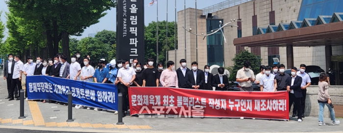 [스포츠서울 | 김용일 기자] ‘문체부장관은 사과하고 공개토론에 임하라’, ‘문화체육계 최초 블랙리스트 작성자 누구인지 재조사하라.’