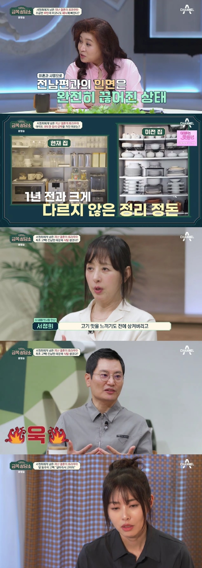 지난해 돌연 사망한 전남편 서세원에게 심각한 가스라이팅을 당했던 서정희는 여전히 일상의 루틴에 집착하고, 루틴에서 벗어나면 공황장애를 겪는다고 했다.