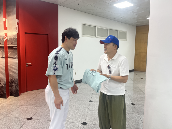 실제 김광규와 만났다. 박동원이 김광규를 초청했다. 관계자는 “지인을 통해서 배우 김광규에게 연락했다. 야구장에 모시고 퍼포먼스를 선보이면 더 뜻깊을 것 같다고 해서 실제로 오늘 배우를 초청했다”고 덧붙였다.