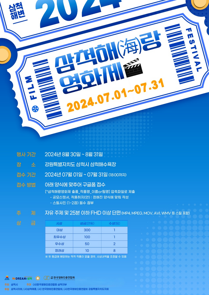 영화제 개최: 2024. 8. 30. ~ 8. 31.(2일간) / 삼척해변 일원