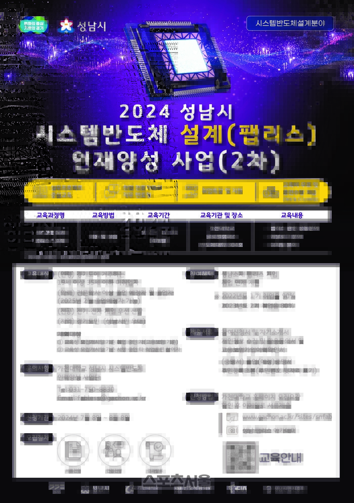 〔스포츠서울│수원=좌승훈기자〕경기 성남시는 ‘제3기 시스템반도체 팹리스 아카데미’ 2차 교육생 40명을 모집한다고 8일 밝혔다.