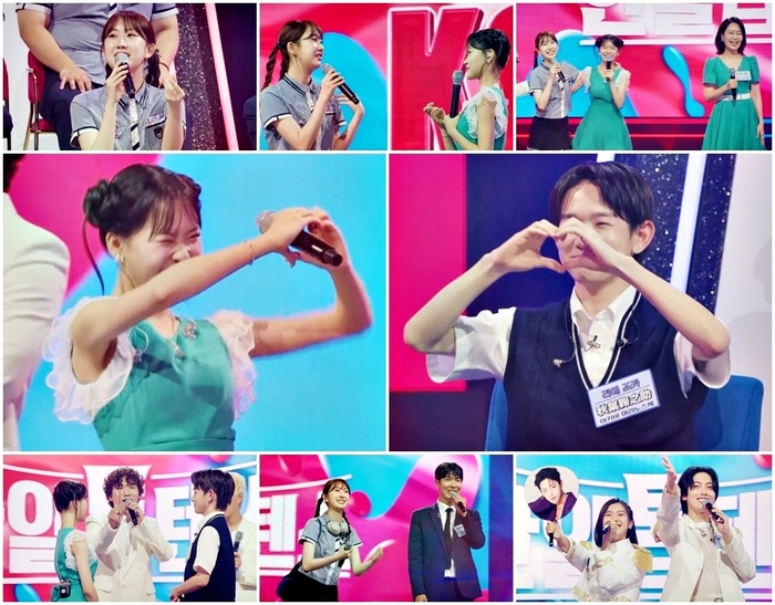 더불어 김다현이 무대를 마치자 우타고코로 리에의 훈남 조카 아키바 마리노스케는 “김다현의 노래에 마음을 빼앗겼다”라는 애정 담긴 소감을 전하고, 두 사람은 하트를 주고받는다. 이어 MC 대성과 강남이 두 사람에게 눈빛 교환까지 시키며 풋풋한 핑크빛 분위기를 드높이는 것. 과연 김다현은 한 살 차이 아키바 마리노스케와 한일 10대 커플을 완성할 수 있을지, 궁금증을 높인다.