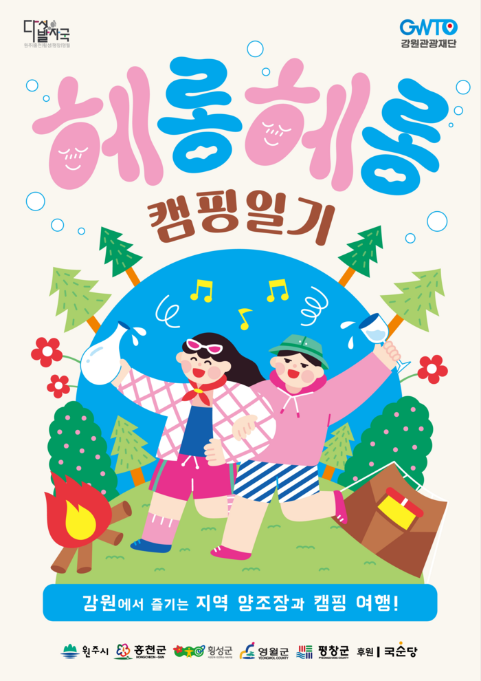 [스포츠서울ㅣ춘천=김기원기자]강원관광재단(대표이사 최성현, 이하 재단)은 오는 7월 13일(토)을 시작으로 원주, 홍천, 횡성, 영월, 평창 등 ‘다섯발자국 관광마케팅 협의회’ 5개 시군과 협업을 통해 지역 양조장 연계 캠핑 프로그램인 ‘헤롱헤롱 캠핑일기’를 시작한다고 밝혔다.