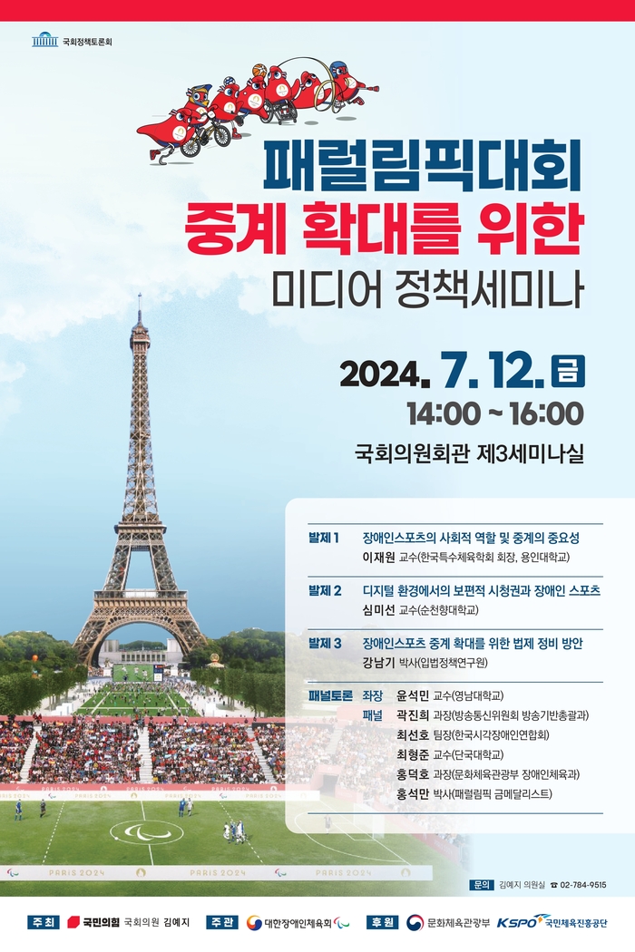 이번 세미나는 파리 패럴림픽을 40여일 앞두고 패럴림픽 시청을 희망하는 국민들이 증가하는 가운데 패럴림픽의 사회적 역할과 중계의 중요성을 논의하고 이를 확대하기 위해 각계각층의 다양한 의견을 공유할 예정이다.