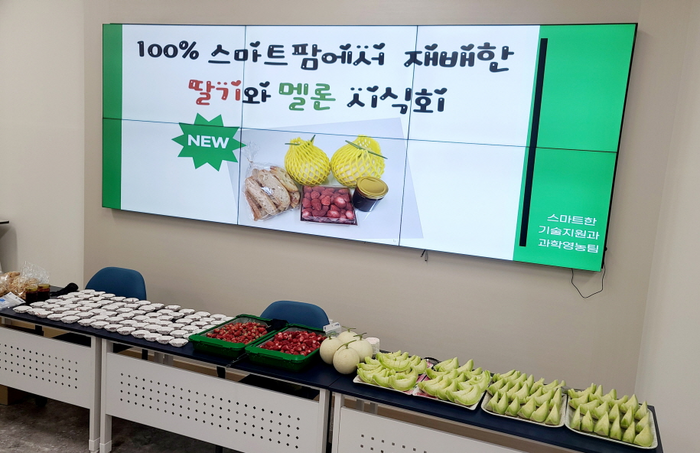 현재 농업기술센터 온실 스마트팜에서는 딸기와 멜론, 천마가 시험 재배되고 있다.