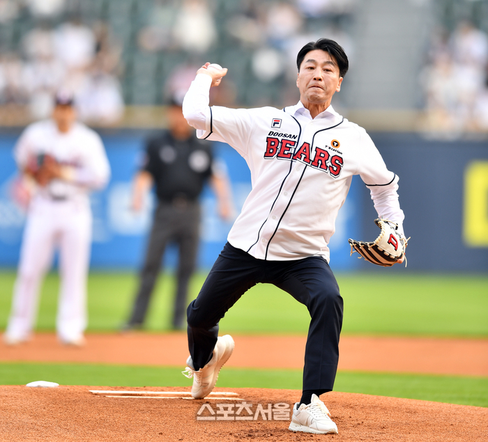 오사카에서 활동하는 110만 유투버 마츠다 부장이 12일 잠실구장에서 열린 2024 프로야구 두산베어스와 삼성라이온즈의 경기에서 시구를 하고 있다. 2024.07.12.
