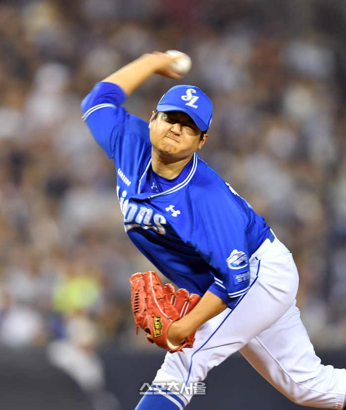 삼성 우완불펜 최지광이 12일 잠실구장에서 열린 2024 프로야구 두산베어스와 삼성라이온즈의 경기 6회말 백정현에 이어 등판하고 있다. 2024.07.12.