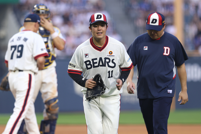 볼넷으로 만루가 됐고, 다시 볼넷을 기록하며 밀어내기다. 5-4까지 쫓겼다. 결국 여기서 교체다. 이영하에게 마운드를 넘기고 내려왔다.