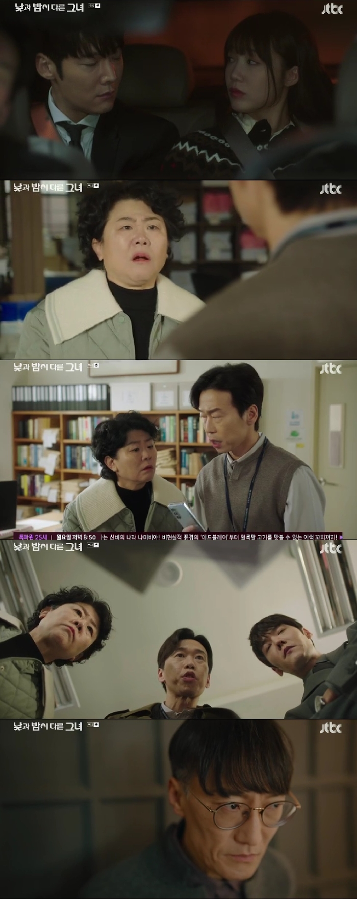 이미진의 반응에 신경이 쓰인 계지웅은 “왜 그런걸 묻냐”라며 버럭 성질을 냈다. 만취한 주병덕과 도가영을 데려다주는 길 계지웅은 “아까 수사관님이 물어본 거 대답을 안 한 것 같은데”라며 답을 궁금해했고, 이미진은 “그건 벌써 답을 한 것 같은데”라며 지웅에게 키스한 일을 슬쩍 언급했다.
