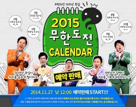 무한도전 달력은 27일 정오부터 MBC TShop과 G마켓을 통해 예약판매된다. MBC 측은 무한도전 달력과 다이어리의 원활한 주문과 배송을 위해 예년과 마찬가지로 사전 예약을 실시하기로 했다고 밝혔다.