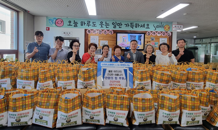 [스포츠서울ㅣ김기원기자]홍천군노인복지관(관장 현윤재) 만원의 힘 후원회(회장 박형균)는 초복을 맞이해 삼계탕, 사골곰탕, 영양죽, 두유 등이 담긴 건강꾸러미 100개 나눔 행사를 진행했다.