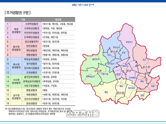 △수원시 19개 생활권 구분, 맞춤형 정비 꾀한다