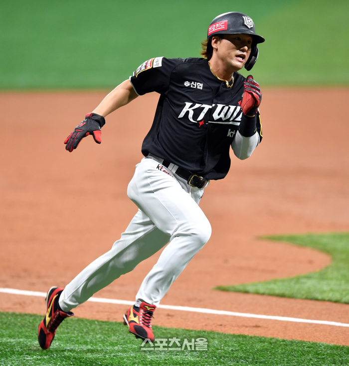 KT 5번타자 김상수가 16일 고척스카이돔에서 열린 2024 프로야구 키움히어로즈와 KT위즈의 경기 1회초 2타점 이어 황재균 안타에 득점하고 있다. 2024.07.16.