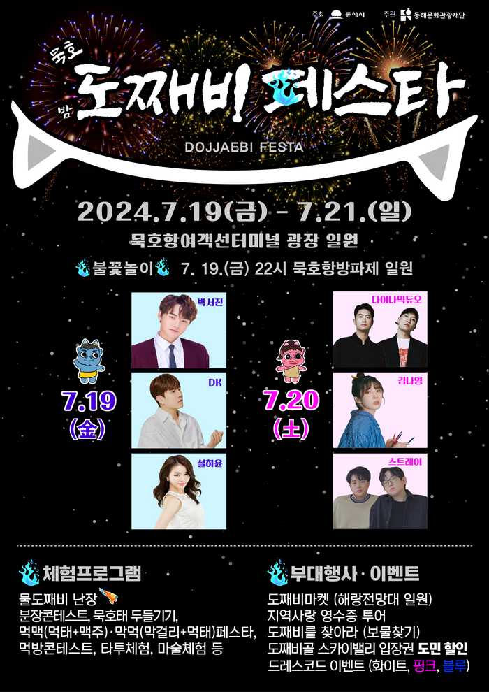또한, 같은 기간에 오후 6시부터 10시까지 묵호 수변공원에서 해랑 전망대까지 도째비 야시장도 열려 도째비 페스타와 함께 방문객 유치에 시너지 효과를 낼 것으로 기대한다.