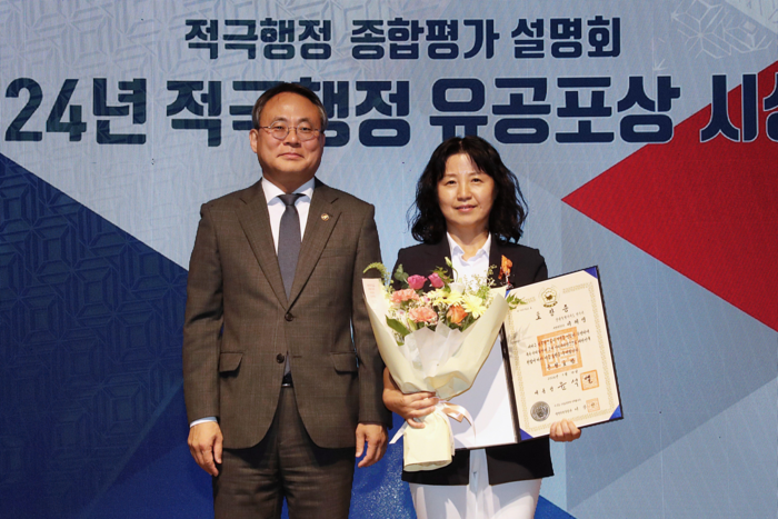 [스포츠서울ㅣ원주=김기원기자]원주시 태장1동 이혜영 동장은 지난 11일 정부세종청사에서 열린 ‘2024년 지자체 적극행정 종합평가’에서 적극행정 유공으로 ‘근정포장’을 받았다.