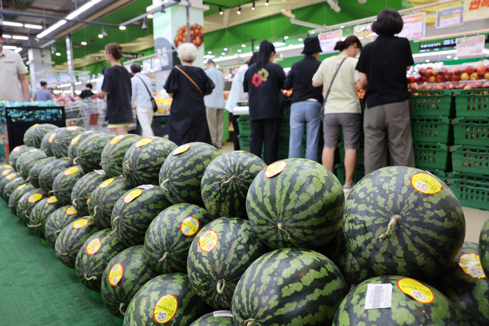 롯데마트도 양구, 봉화, 진안, 무주(전북), 단양(충북) 등 비 피해가 거의 없는 고산지 수박 물량을 추가 매입해 가격 안정화를 꾀할 방침이다.