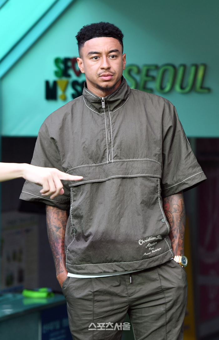 FC서울 제시 린가드가 21일 서울월드컵경기장에서 열린 하나은행 K리그1 2024 김천 상무와 경기에 앞서 부상으로 인해 출전하지 못하고 그라운드 입구에서 동료들을 바라보고 있다. 2024. 7. 21.