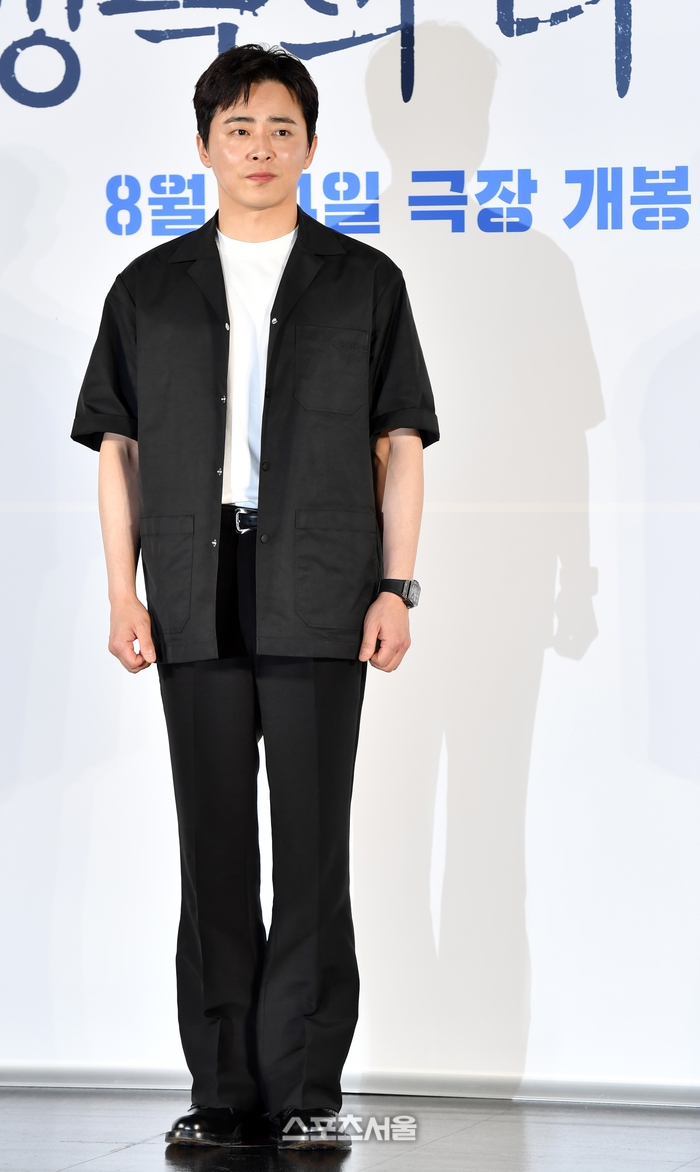 조정석이 22일 건대입구 롯데시네마에서 열린 영화 ‘행복의 나라’ 제작보고회 무대에 올라 포토타임을 갖고 있다. ‘행복의 나라’는 1979년 10.26 대통령 암살사건에 대한 대한민국 최악의 정치재판을 다룬 영화로 고인이 된 이선균의 유작이다.