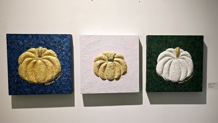이번 전시에서 온람 작가는 황금호박 시리즈를 통해 세월의 풍파를 인내하고 풍성하게 자라난 호박을 통해 풍요, 안식, 행복 등을 전달한다.