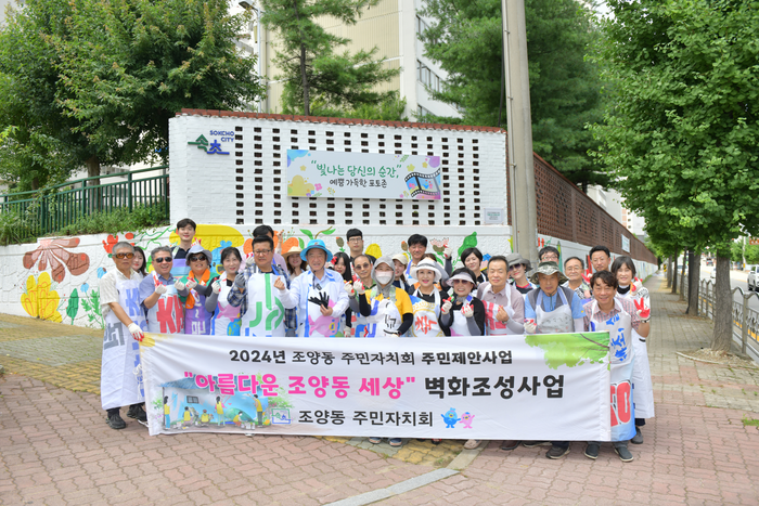 ‘아름다운 조양동 세상’ 벽화조성사업은 지난 2023년 8월 개최된 ‘제2회 조양동 주민총회’에서 주민투표를 통해 선정된 마을사업으로, 올해 1월부터 지역 주민들이 대상지 선정부터 담장 고압 세척 및 바탕 채색 작업까지 직접 참여하여 진행하였으며, 작가의 도움을 받아 노후화된 벽면에 아름다운 그림을 그려 넣어 거리에 활력을 불어넣었다.